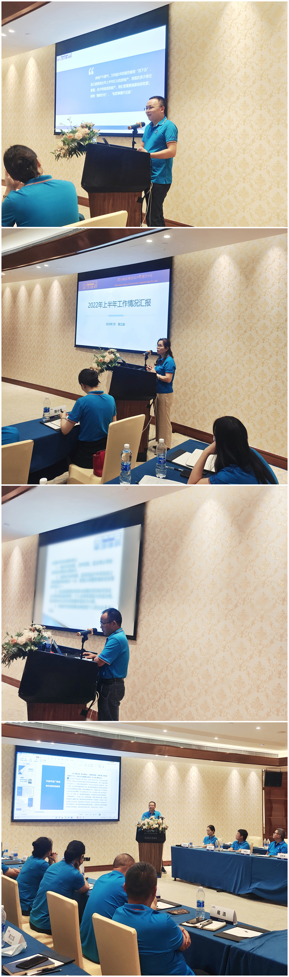 安全是生命線,質量是生存線。華域集團安委會副主任廖初龍及專業機構嘉賓率先做了安全管理、質量管理等方面工作的分享;隨后華域建設副總經理彭德軍、黎江南、田富華、劉國梁分別回顧了2022年上半年的工作情況,也根據會議主題對2022年下半年的工作計劃做了詳細闡述。